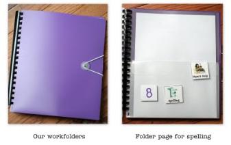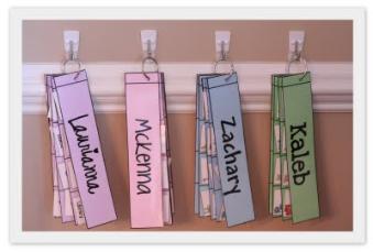 Our activity cards are stored in a simple pocket chart that hangs in one of our cupboards.