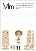 astronaut words, learning a Bible verse, identifying upper and lower case M's, tracing and/or cutting